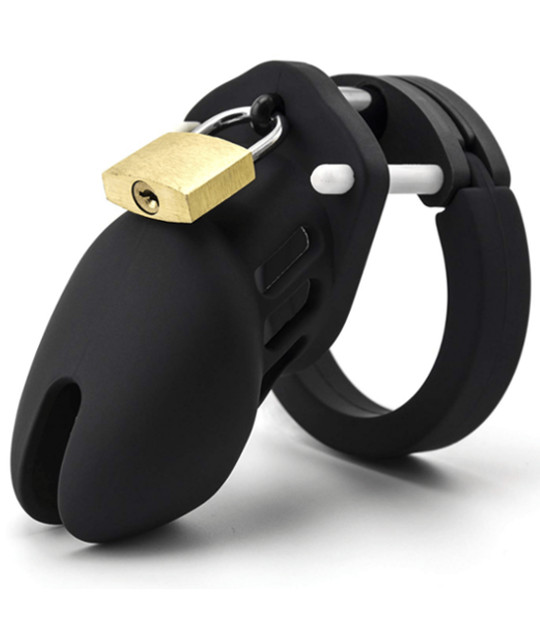 Enjoy total control over your lover with this shaft style male chastity cage by Love in Leather Made of silicone it is safe to wear for longer periods of time Comes with 5 different size base rings and a lock