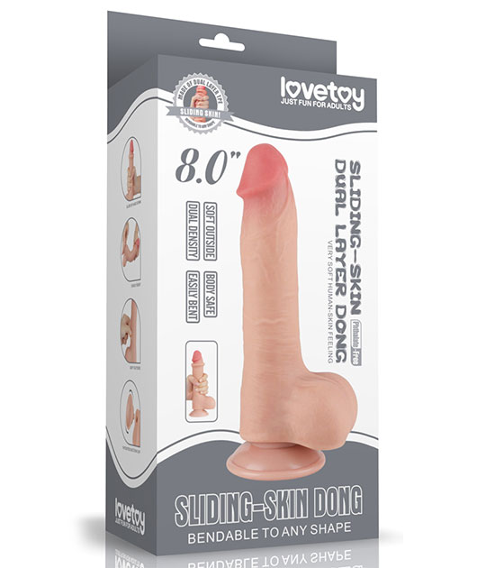 Lovetoy 8inch Sliding Skin Dual Layer Dong Balls Flesh